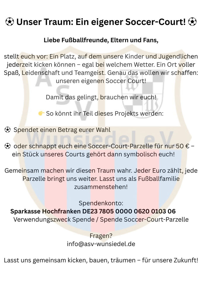 Kontakt für Rückfragen und weitere Informationen: David Reiß d.reiss@asv-wunsiedel.de